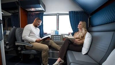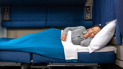 Relax in a Cozy Roomette with Beds, Power Outlets & Scenic Views. Experience Rail Travel the Premium Way.