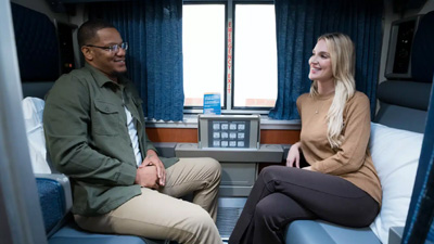 Relax in a Cozy Roomette with Beds, Power Outlets & Scenic Views. Experience Rail Travel the Premium Way.