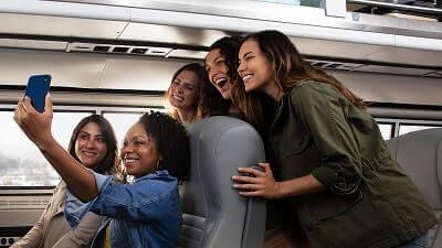 Reclining seats, generous legroom, power outlets, and great views — pay less, see more.